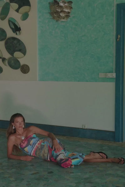 This Strapless Midi dress showcasing the Loco mixed media artwork is made from structured ribbed cotton creating a form-fitting and flattering silhouette.